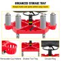 Sgabello da garage con ruote VEVOR, dimensioni e vassoio portautensili rosso su ruote.