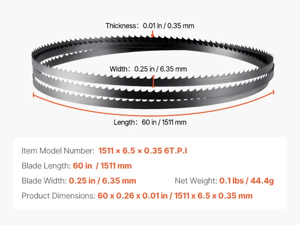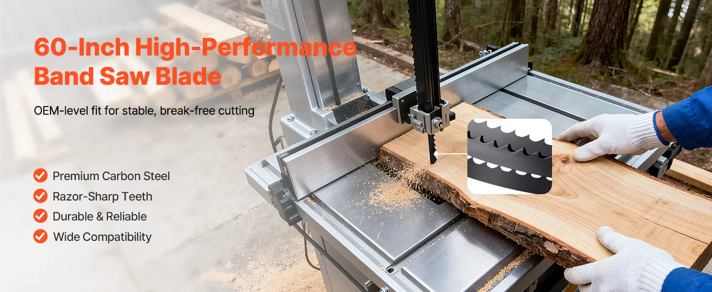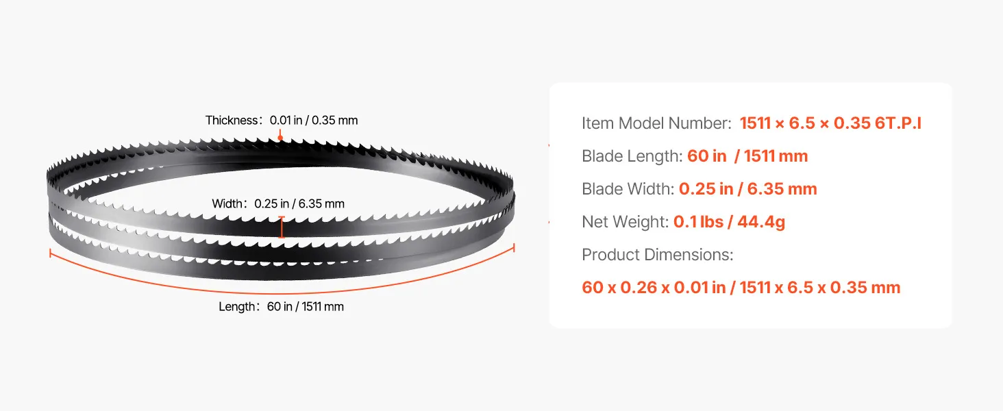 VEVOR Lama di Ricambio per Seghe a Nastro 1511x6,35x0,35 mm 6 Denti TPI 15 HRC Lama di Ricambio in Acciaio al Carbonio Affilata Compatibile con le Troncatrici a Nastro per Lavorazione del Legno
