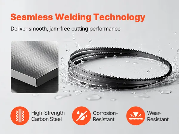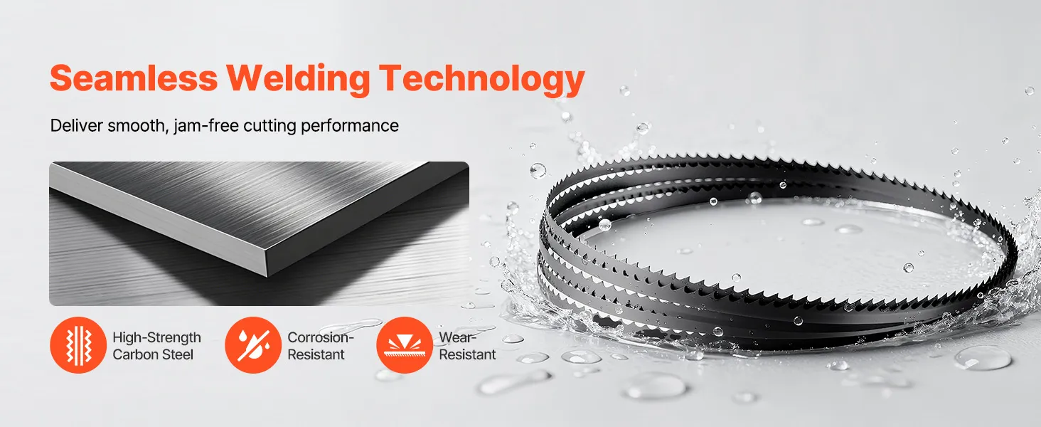 Acciaio al carbonio ad alta resistenza: realizzata in acciaio al carbonio ad alta resistenza e progettata con tecnologia di saldatura senza giunzioni, questa lama per seghe a nastro offre elevata durezza, un tagliente durevole