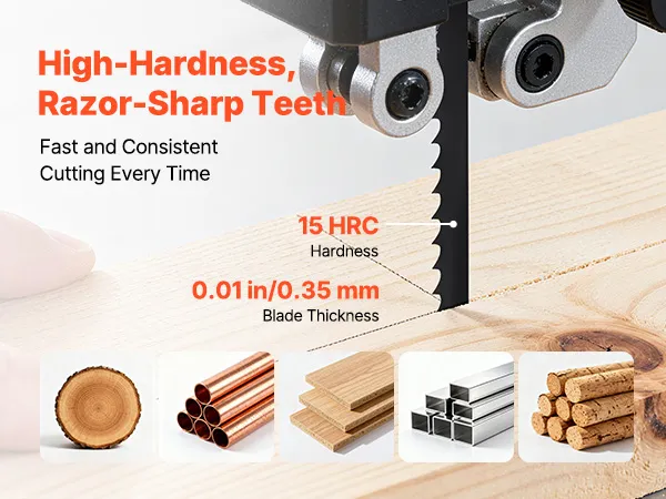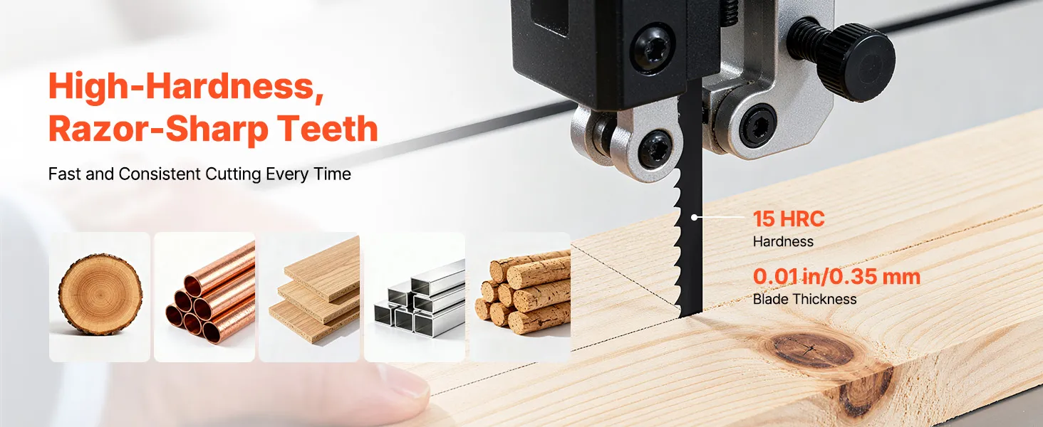 Denti ultra affilati: con una larghezza di 6,35 mm, una durezza di 15 HRC e uno spessore di 0,35 mm, questa lama di ricambio per seghe a nastro taglia facilmente legni duri, legni teneri e materie plastiche