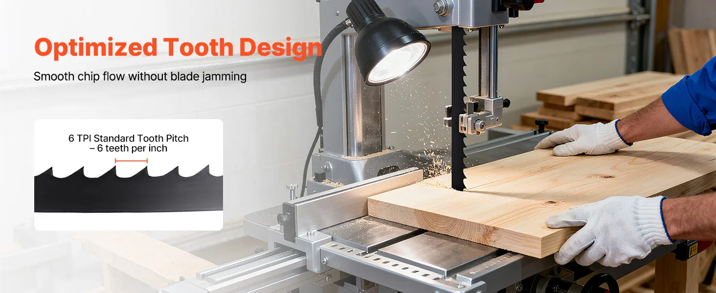 Questa lama a nastro evacua efficacemente la segatura durante i tagli rapidi. Riduce l'intasamento e il surriscaldamento, prevenendo il surriscaldamento della lama, garantendo prestazioni costanti e proteggendo sia la lama che l'attrezzatura.