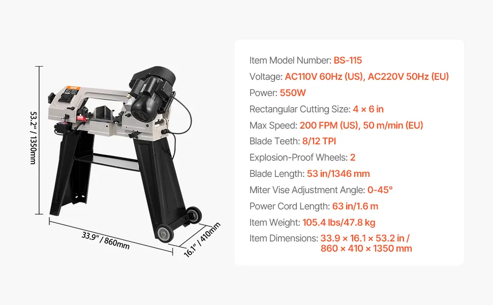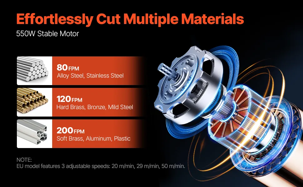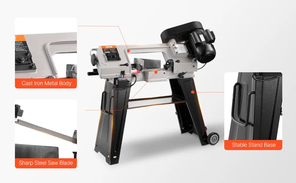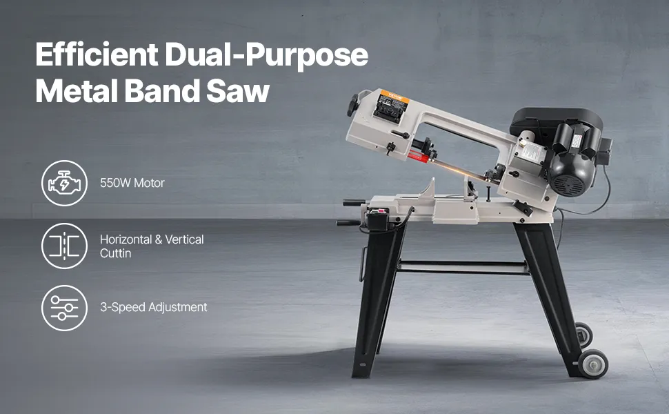 Prestazioni di taglio potenti: la troncatrice a nastro orizzontale in metallo è dotata di un robusto motore da 550 W con una velocità di 1420 giri/min, che fornisce una potenza costante per attività di taglio efficienti