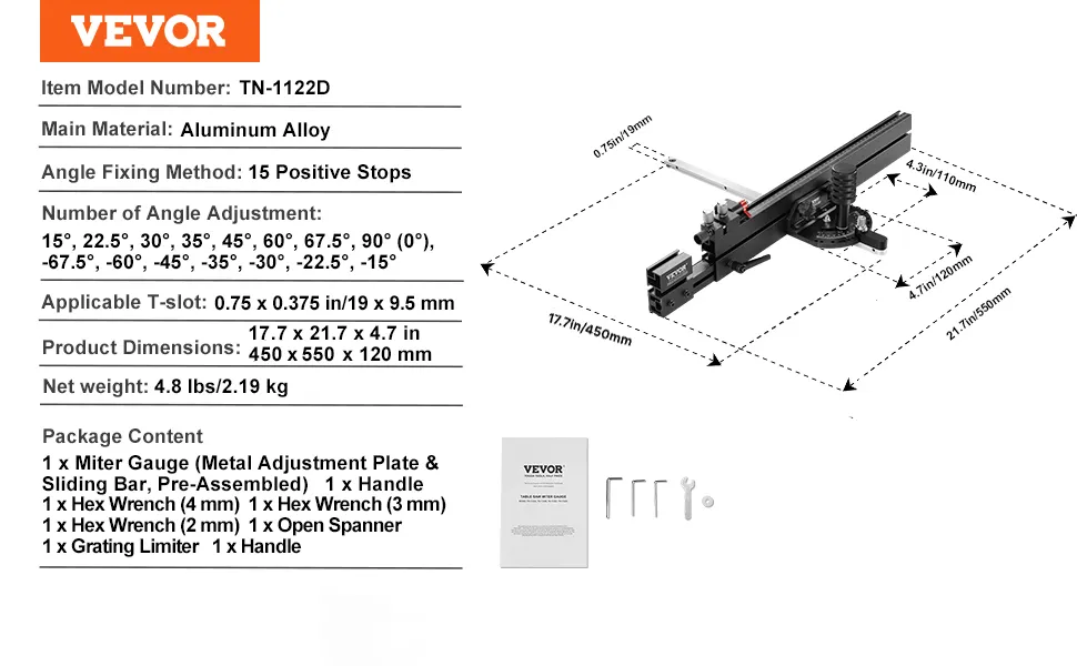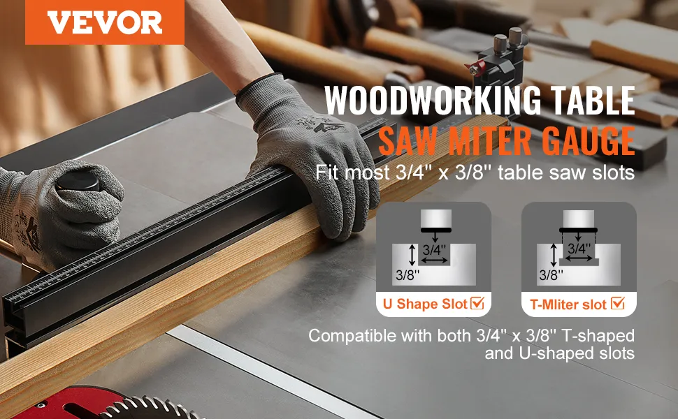 Questo calibro per tagli obliqui è stato progettato per adattarsi a vari modelli di seghe da tavolo. Le fessure standard da 0,75 x 0,375 pollici o 19 x 10 mm possono ospitarlo, rendendolo uno strumento versatile compatibile con vari marchi e modelli di seghe da tavolo. Puoi facilmente regolare il calibro per adattarlo perfettamente alla fessura per tagli obliqui. Ciò garantisce che rimanga stabile durante l'uso, fornendo tagli precisi. Inoltre, la regolabilità significa che può adattarsi per soddisfare le tue esigenze specifiche. Pertanto, questa flessibilità lo rende un'aggiunta preziosa a qualsiasi configurazione per la lavorazione del legno.