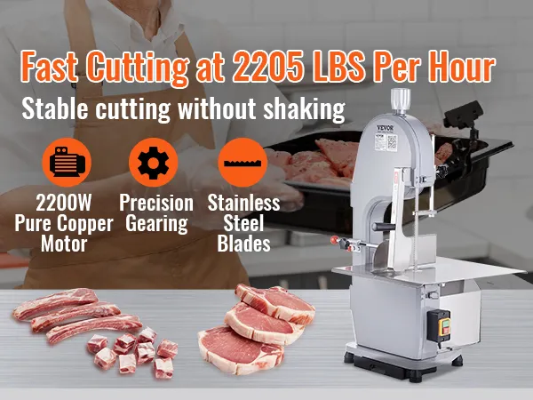 Stabile & Efficiente: il motore in rame puro da 2200W fornisce una potenza alta e la lama affilata in acciaio inossidabile, insieme agli ingranaggi di precisione, garantisce un'efficienza di taglio fino a 1000kg/ora. La macchina tagliaossa elettrica presenta un taglio uniforme senza incepparsi, permettendoti di tagliare facilmente varie ossa dure e carne congelata.