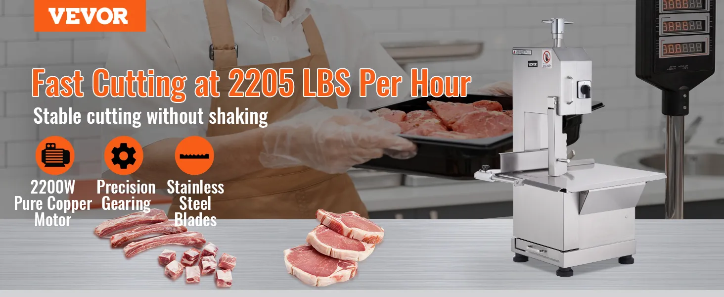 VEVOR Segaossa Elettrica da Banco Uso Commerciale in Acciaio Inox per Carne Ossa da Macellerie 2200W Produttività max. 1000kg/ora, Macchina Segaossa Elettrica Spessore di Taglio 0-180mm Altezza 230mm