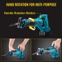 Basta premere il pulsante di rotazione e la sega alternativa può essere ruotata di 180 ° a sinistra ea destra per controllare gli angoli di taglio e soddisfare le varie esigenze in modo flessibile.