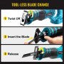 Non è necessario alcuno strumento ausiliario, solo tre semplici passaggi. Ruotare il mandrino in senso antiorario, inserire la lama richiesta e quindi rilasciare il mandrino. Il funzionamento a mani nude consente di passare in modo efficiente tra le lame.