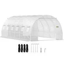 VEVOR Serra a tunnel walk-in 4,4 x 1,9 x 1,9 m giardinaggio, Serra pellicola a tunnel per piante telaio in acciaio zincato, Copertura in PE bianco, Porta avvolgibile con cerniera 8 finestre esterne