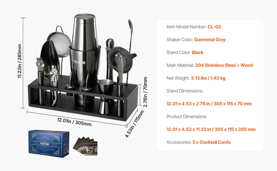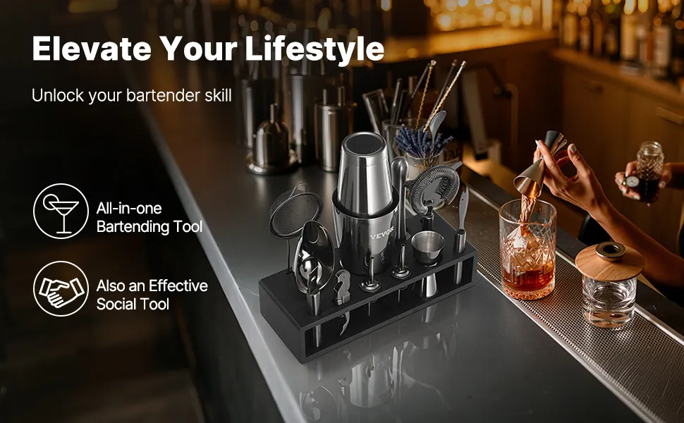 Il set completo di agitatore per cocktail soddisferà tutte le tue esigenze in fatto di cocktail: goditi il divertimento e l'arte del bartending.