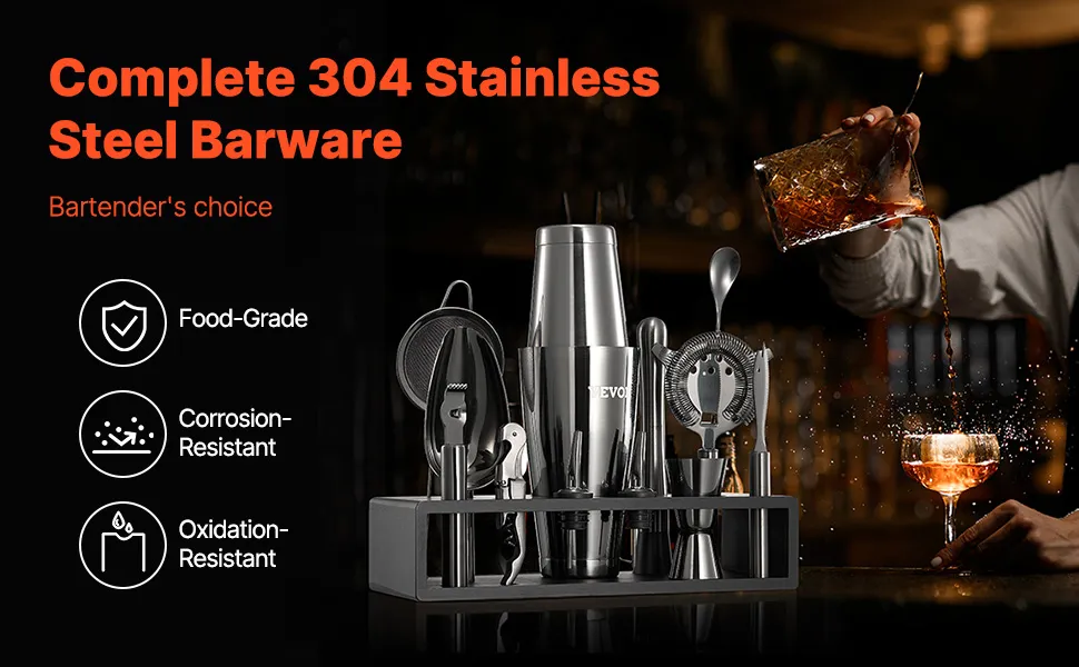 Da principiante a maestro del bartending casalingo, questo kit da barista fornisce tutti gli strumenti standard di cui hai bisogno per un inizio rapido e migliora il tuo stile di vita. Trasforma i tuoi incontri sociali da ordinari a creativi e affascinanti.