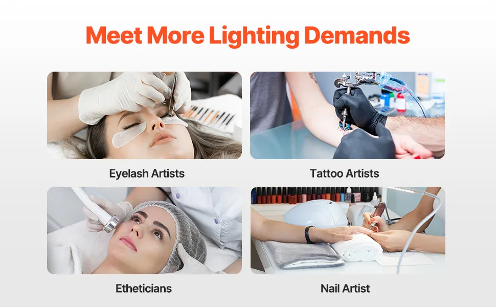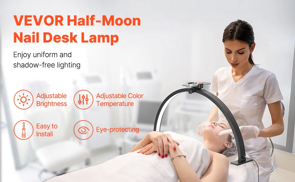 Illuminazione completa: la lampada da scrivania a mezzaluna fornisce un'illuminazione più uniforme, riducendo al minimo ombre e riflessi. Garantisce una visione chiara e senza distorsioni durante qualsiasi trattamento di bellezza o per unghie