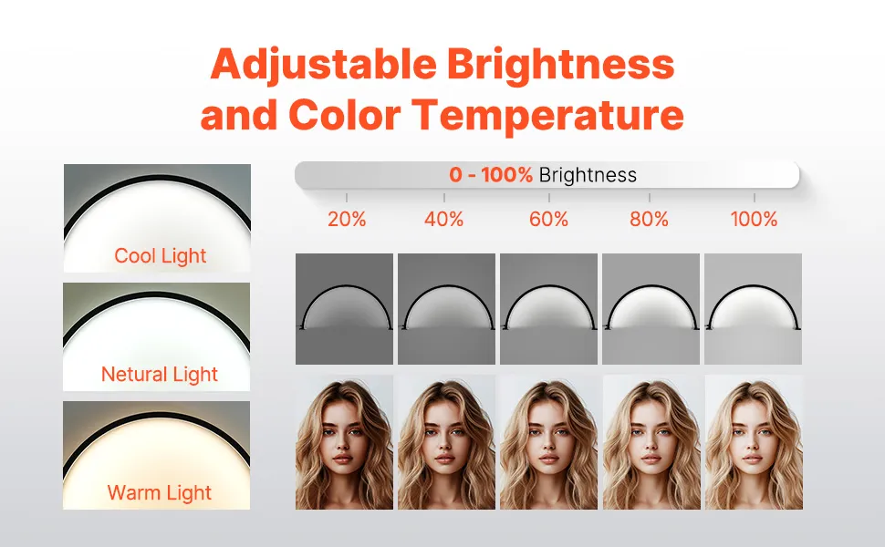 La nostra luce a mezzaluna è dotata di un supporto per telefono. Puoi facilmente appoggiare il tuo cellulare sul supporto per guardare video didattici o riprodurre musica rilassante.