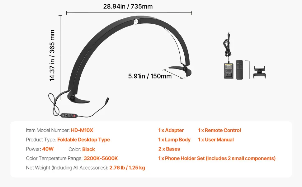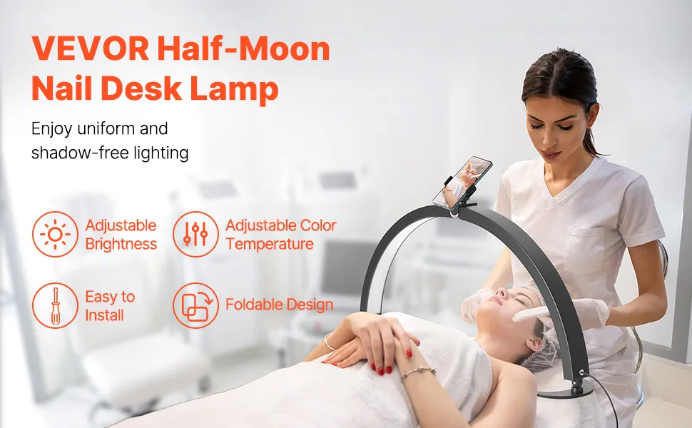 VEVOR Lampada da Tavolo per Unghie a Forma di Mezzaluna da 40 W con Supporto per Telefonino Luminosità Temperatura del Colore Regolabile, Lampada da Tavolo a LED ad Arco per Trucco Salone Bellezza