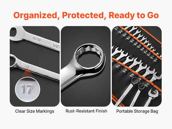 • Costruito per durare: Realizzato in acciaio rinforzato con rivestimento antiruggine, il nostro set di chiavi a forchetta offre affidabilità a lungo termine in diversi ambienti di lavoro. La sua struttura robusta mantiene forma e prestazioni nel tempo, anche con un uso frequente