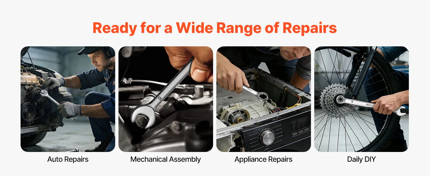 Che tu stia lavorando sotto il cofano, su un elettrodomestico o vicino a staffe a parete, queste chiavi combinate offrono presa controllata e accesso flessibile. Il design a doppia estremità mantiene stabilità su fissaggi usurati, riducendo lo sforzo e migliorando l'efficienza complessiva.