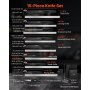 VEVOR Set di Coltelli da 15 Pezzi con Ceppo Portacoltelli e Acciaino, in Acciaio Inossidabile ad Alto Tenore di Carbonio, Coltello da Cucina con Impugnatura Ergonomica in PP, per Cuochi Amatoriali