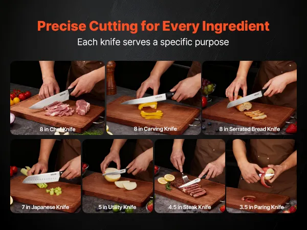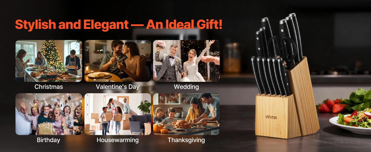 Questo set di coltelli da cucina unisce eleganza e funzionalità, aggiungendo un tocco moderno e sofisticato alla tua cucina. È il regalo ideale per San Valentino, Natale, matrimoni e compleanni: una sorpresa indimenticabile per tutti gli appassionati di cucina.