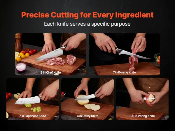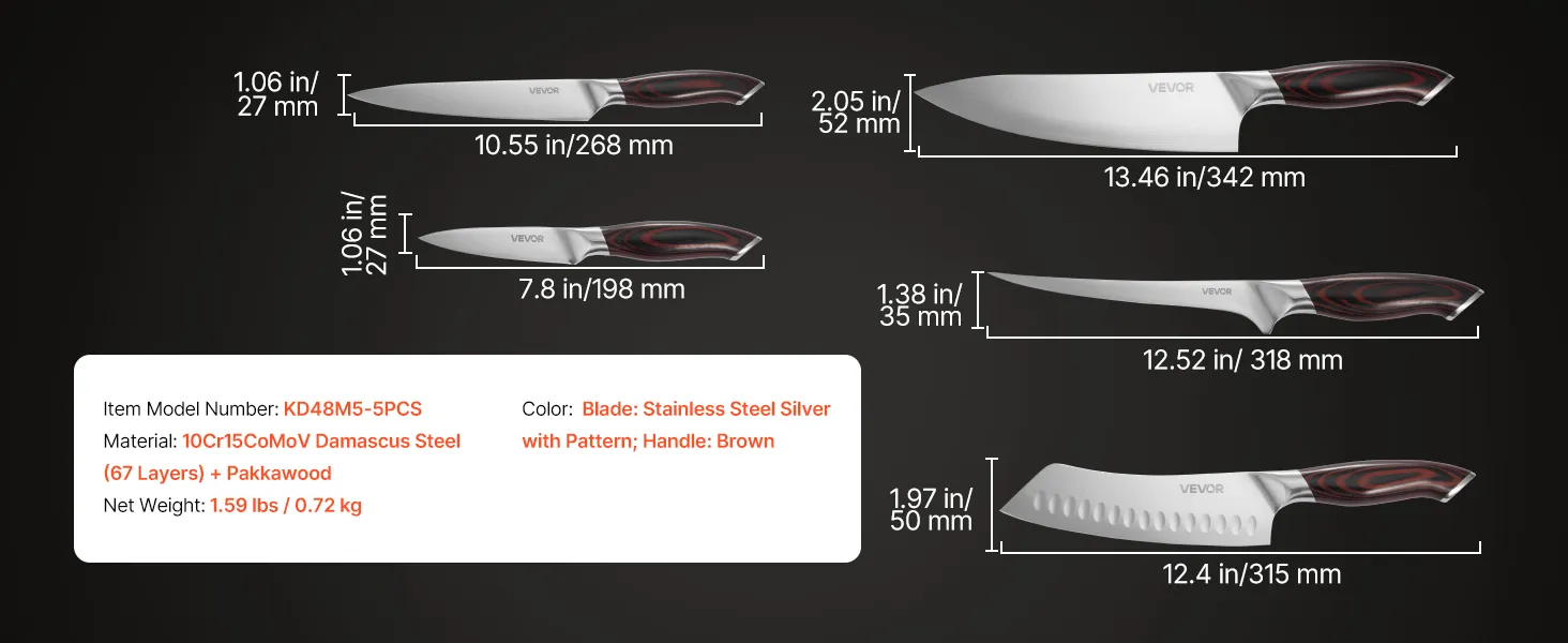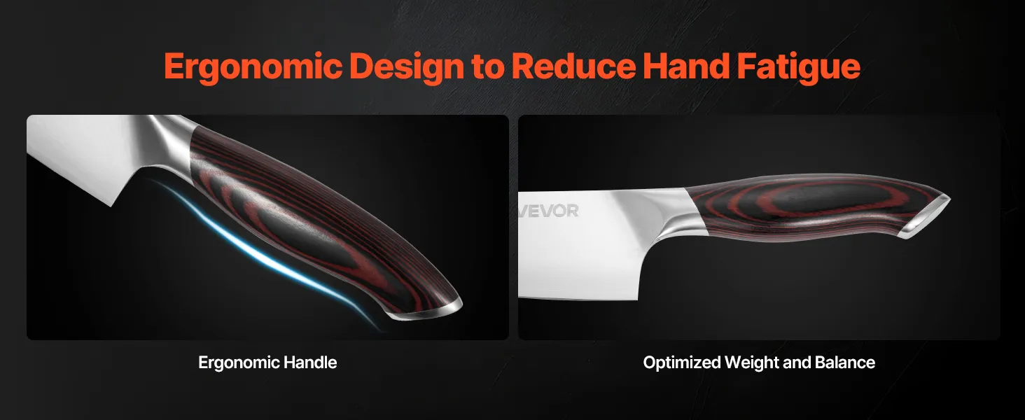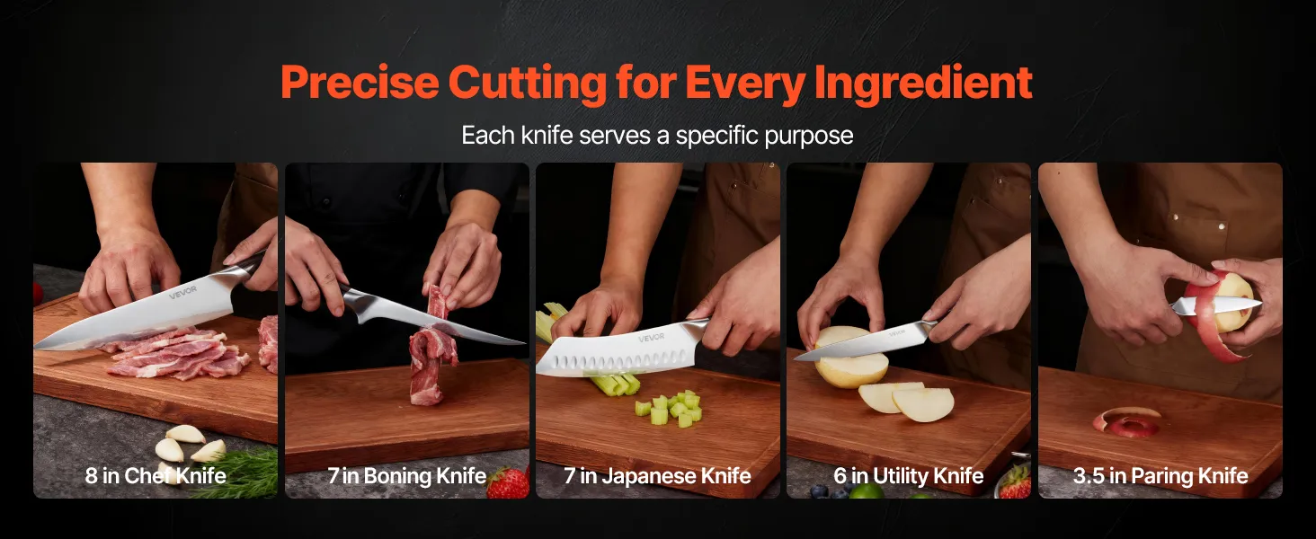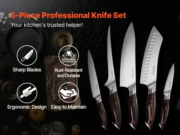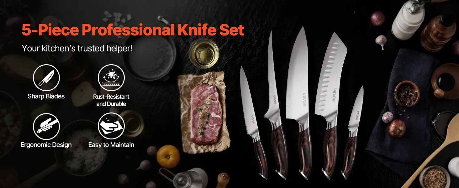 VEVOR Set di Coltelli da Cucina da 5 Pezzi, in Acciaio Inossidabile ad Alto Tenore di Carbonio, Coltello da Cucina con Impugnatura Ergonomica e Resistente alla Rottura per un Taglio Preciso