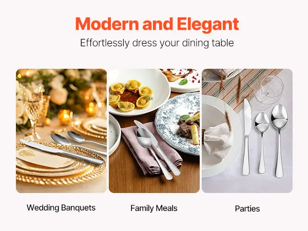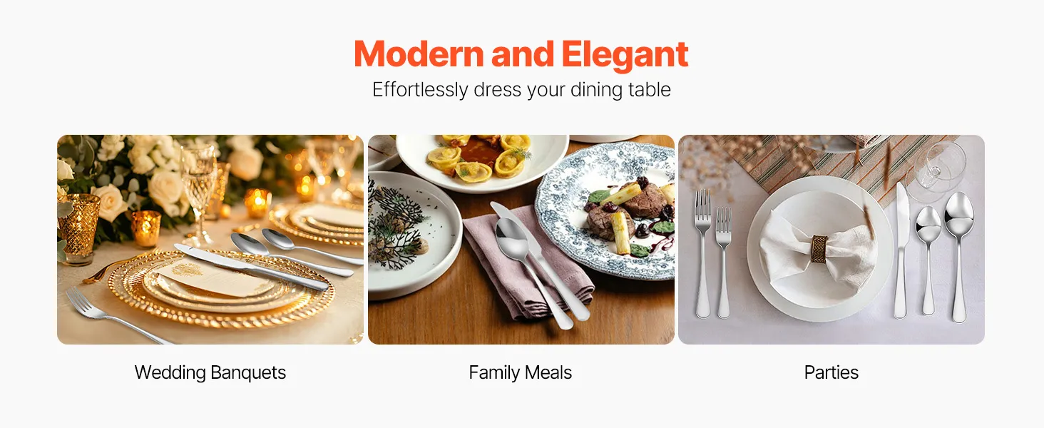 Design moderno ed elegante: i set di posate riutilizzabili per il ristorante di casa presentano un design elegante e moderno che si abbina facilmente a una varietà di impostazioni della tavola, dai pasti quotidiani informali alle occasioni formali. Il suo stile sofisticato migliora la tua esperienza culinaria