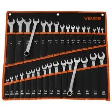 VEVOR Combination Wrench Set, 32-Piece SAE and Metric, 12-Point Box End and 15° Angled Open End Combination Wrenches with Roll Up Pouch, Carbon Steel, for General Household and Automotive Repairs