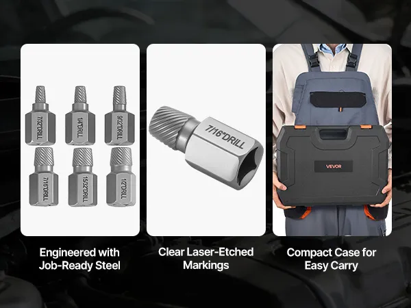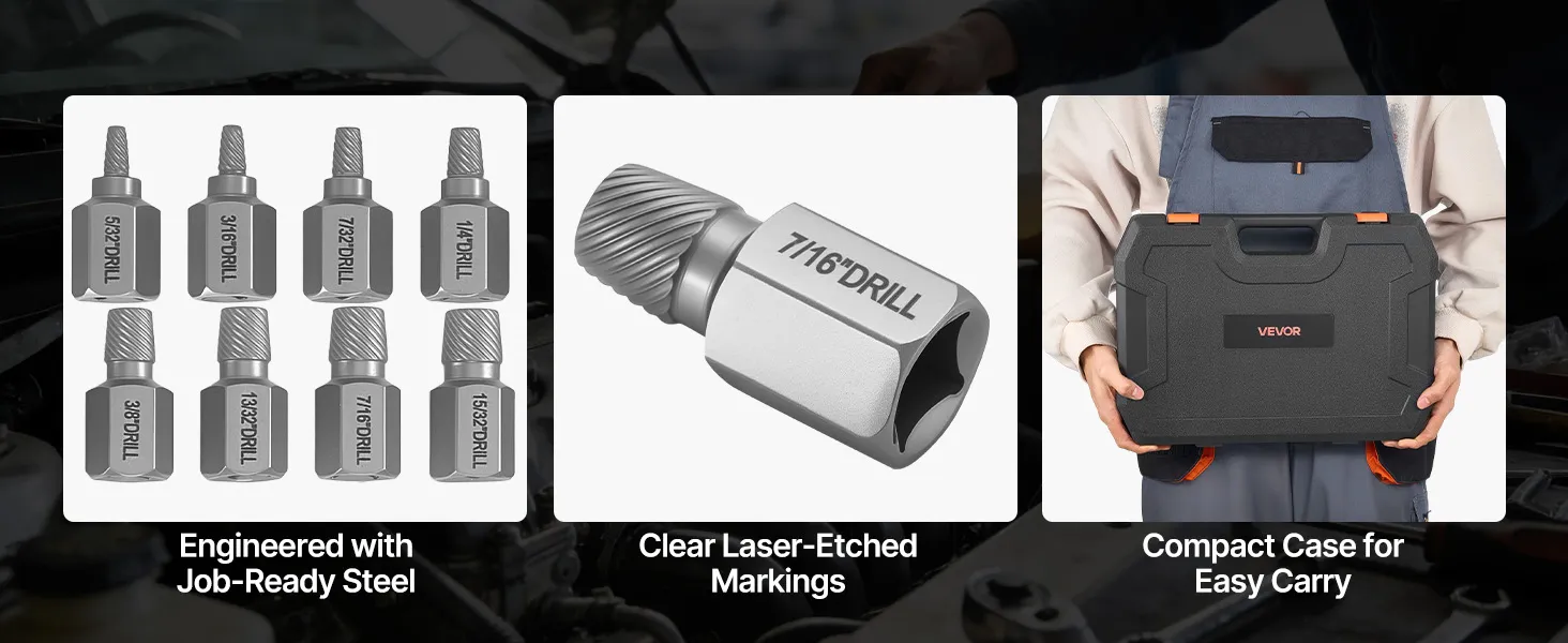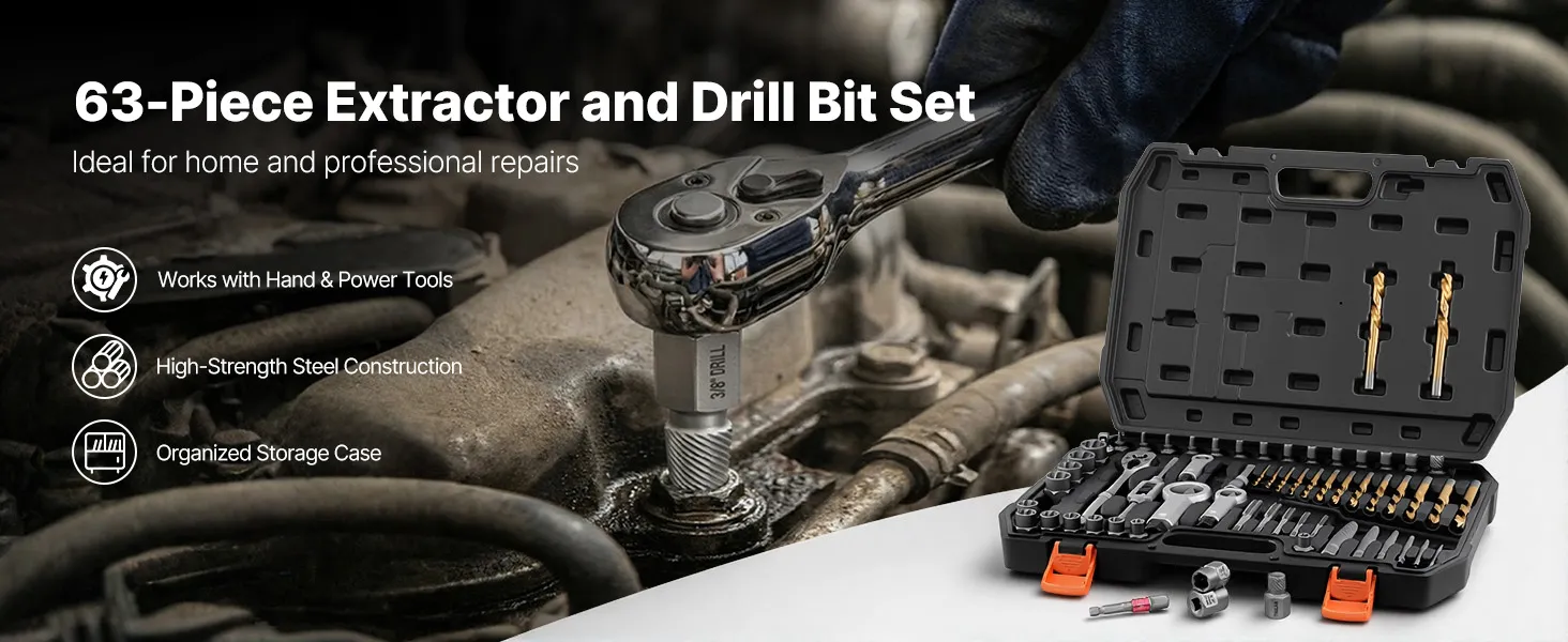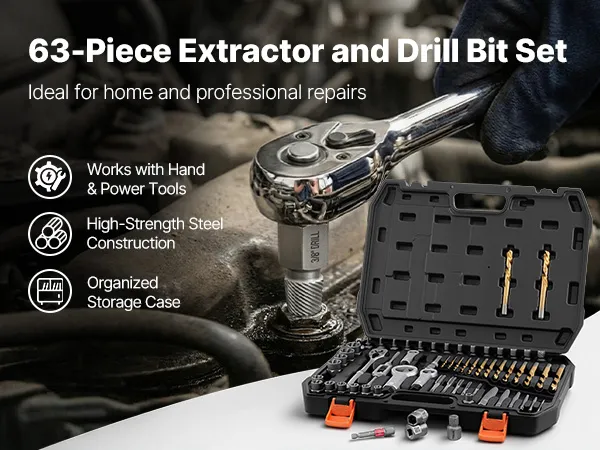 Dalle viti spanate ai bulloni bloccati, questo kit di estrazione per bulloni rotti e il set di punte da trapano tutto in uno ti aiutano a completare il tuo lavoro più velocemente.
