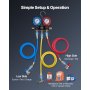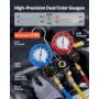 VEVOR Kit Manometro del Refrigerante per Aria Condizionata per Autoveicoli, Strumenti del Refrigerante a 3 Vie Tubi Flessibili Raccordi a Sgancio Rapido, Manometro per Aria Condizionata Auto