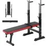 Questa panca multifunzionale è dotata di un rack per squat per esercizi per la parte inferiore del corpo, 2 maniglie per trazioni per allenare i muscoli delle braccia e una panca piana per allenare i muscoli addominali e delle gambe.