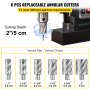 - 6 x Taglierina anulare (1 "(2,5 cm), 1-1/8" (2,9 cm), 1-1/4" (3,2 cm), 1-1/2" (3,8 cm), 1-3/4 "(4,4 cm), 2" (5 cm))