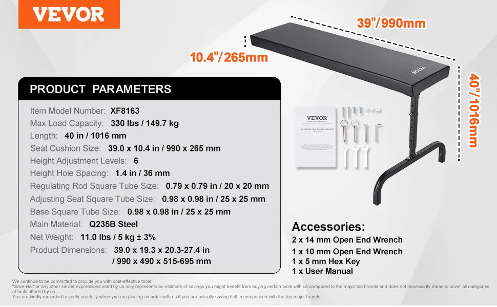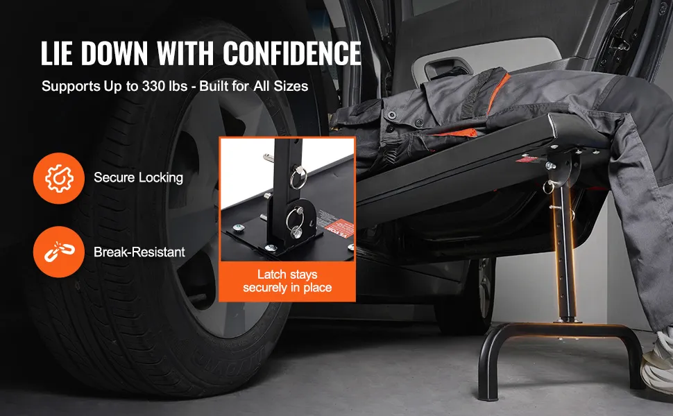 Questo carrello meccanico è perfetto per accedere a spazi ristretti sotto cruscotti o volanti. Con una lunghezza di 40 pollici e una capacità di carico di 330 libbre, si adatta a un'ampia gamma di altezze e corporature, offrendo un supporto comodo.