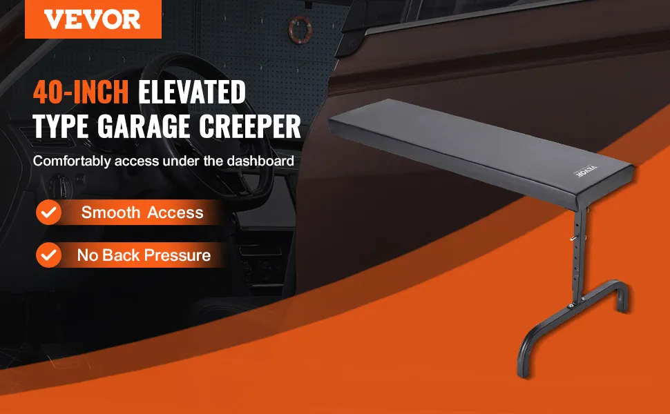 Facile accesso sotto i cruscotti: con un esclusivo design rialzato con supporto monolaterale, questo carrello meccanico è ideale per lavorare sotto il cruscotto o il volante di auto e SUV. Con una lunghezza di 40 pollici (1 metro), fornisce un supporto completo per la schiena.