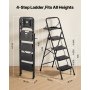 VEVOR Scaletta Pieghevole Salvaspazio con 4 Gradini con Ampio Pedale Antiscivolo, Impugnatura Comoda, Scala Portatile in Acciaio con Capacità di 272 kg, Multiuso per Cucina, Casa, Casa e Ufficio