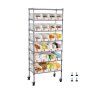 VEVOR Scaffale Portaoggetti Mobile a 7 Ripiani, 24 Contenitori Portaoggetti, Sistema di Scaffalature in Filo d'Acciaio con Ruote, per Garage, Magazzino, Ufficio, Ristorante, Aula, Cucina
