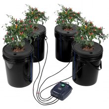 VEVOR DWC Sistema di Coltivazione Idroponica, Kit Top Drip, Coltura in Acque Profonde da 20 Litri, 4 Secchi, con Pompa ad Aria, Pietre porose, Dispositivo di Livello dell'Acqua, per Verdure in Foglia