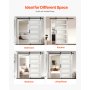 VEVOR Porta Scorrevole 1067 x 2134 mm Pannello in MDF e Vetro Satinato, Kit per Porta Scorrevole con Ferramenta Guida Telaio a H per Casa Divisorio Spazio Soggiorno Bagno Camera da Letto, Bianco