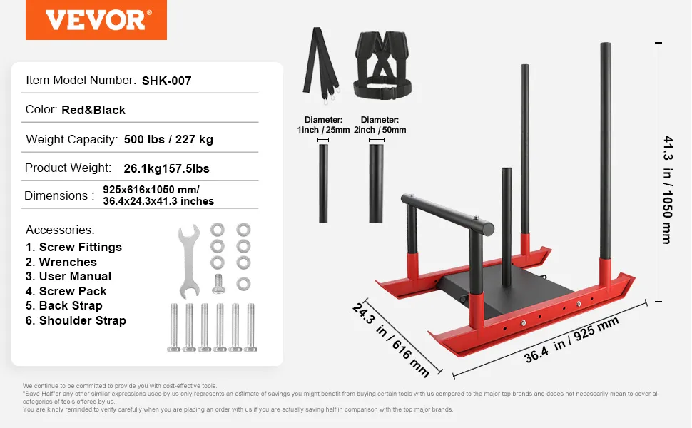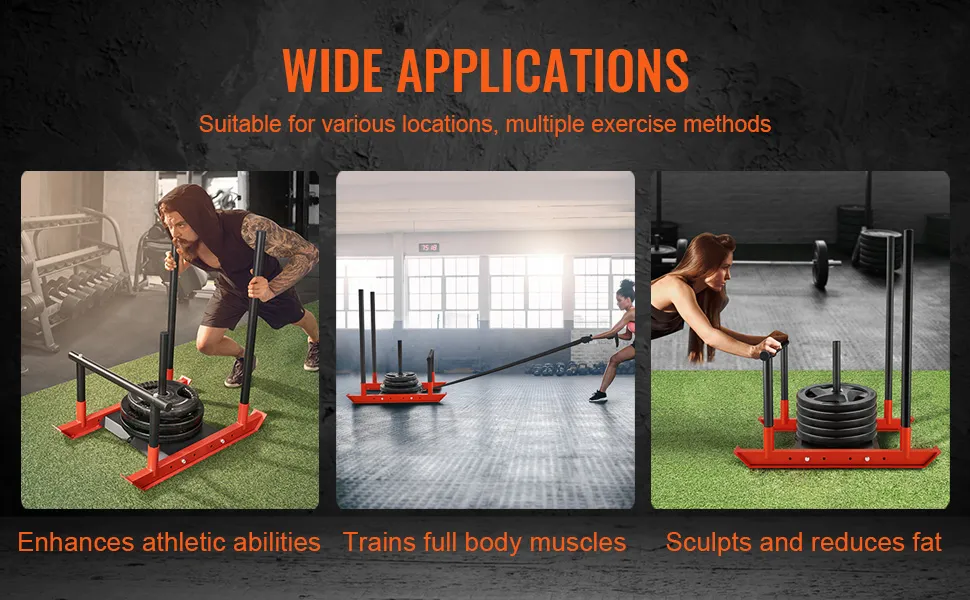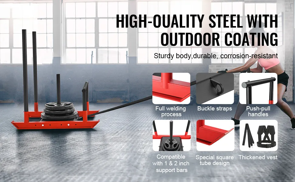 Barre di supporto: la nostra slitta da allenamento è configurata con barre di supporto da 1" e 2", che la rendono adatta sia per dischi standard che. Con un'impressionante capacità di carico di 500 libbre, puoi aggiungere il peso appropriato alle tue esigenze di allenamento, bruciando efficacemente grassi e calorie.