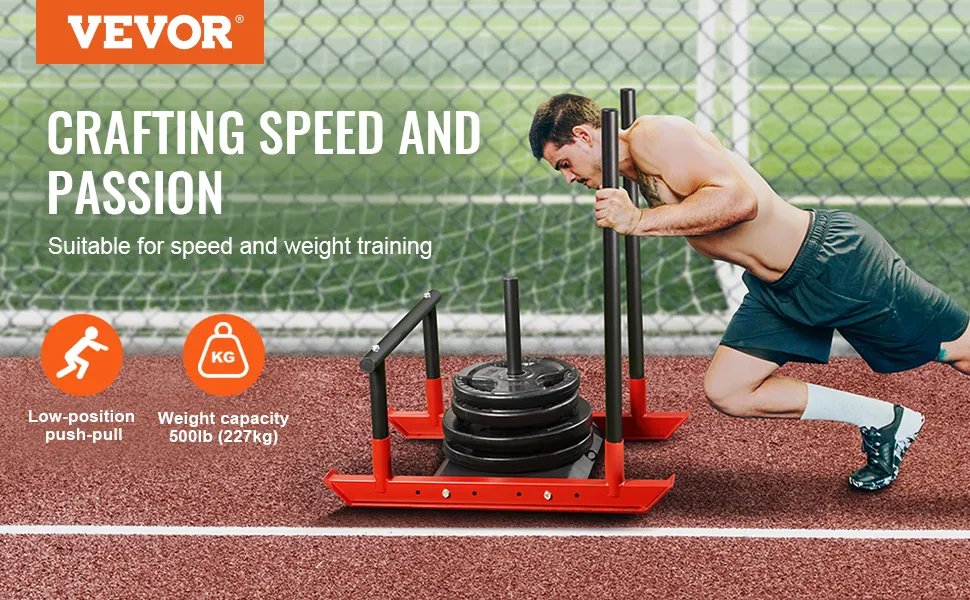 Che tu sia un atleta o un principiante, questa slitta per l'allenamento con i pesi VEVOR è perfetta per chi desidera aumentare la propria velocità. Aiuta a sviluppare la forza necessaria per movimenti rapidi. Lo scheletro consente anche vari esercizi di allenamento della velocità. Inoltre, la sua versatilità consente varie forme di allenamento della forza. Puoi anche usare la sua slitta per concentrarti su specifici gruppi muscolari con facilità. Ciò la rende uno strumento utile per sviluppare i muscoli e migliorare le prestazioni. Non importa se il tuo livello di forma fisica è alto o meno, usare questa slitta ti aiuterà a raggiungere i tuoi obiettivi di velocità e forza.