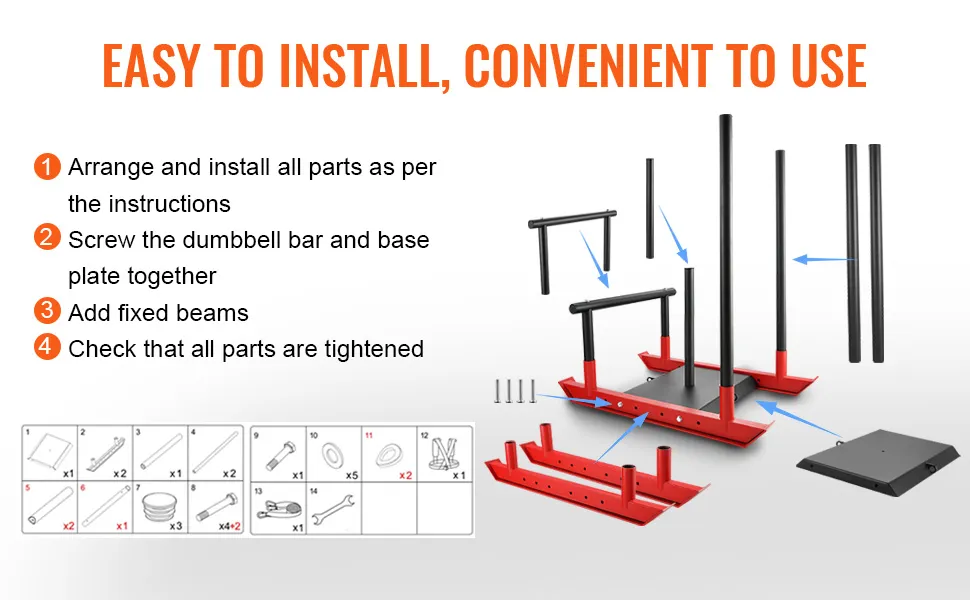 La slitta per l'allenamento con i pesi VEVOR è un'installazione senza sforzo. Hai bisogno solo di pochi strumenti per prepararla. Questo la rende comoda sia per l'uso domestico che in palestra. Il design versatile consente vari esercizi. Puoi usarla per spingere, tirare e persino trascinare. Questa versatilità rende questa slitta incredibilmente utile in qualsiasi routine di allenamento. Puoi iniziare rapidamente il tuo allenamento con l'intuitivo sistema di assemblaggio della nostra slitta. Anche lo smontaggio per lo stoccaggio è molto semplice. Pertanto, è un'opzione pratica per le persone con spazio limitato.