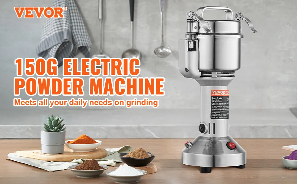 VEVOR 150g Mulino Elettrico per Cereali, Macina Spezie Commerciale Alta Velocità 850 W, Macchina Polverizzazione in Acciaio Inox, per Cereali Secchi, Spezie, Caffè, Mais, Pepe, Tipo Oscillante