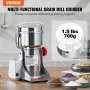 VEVOR mulino per cereali Macina Spezie Cereali Alimenti Secchi Capienza max da 700g in Acciaio Inox Tipo Oscillante con Schermo di Controllo
