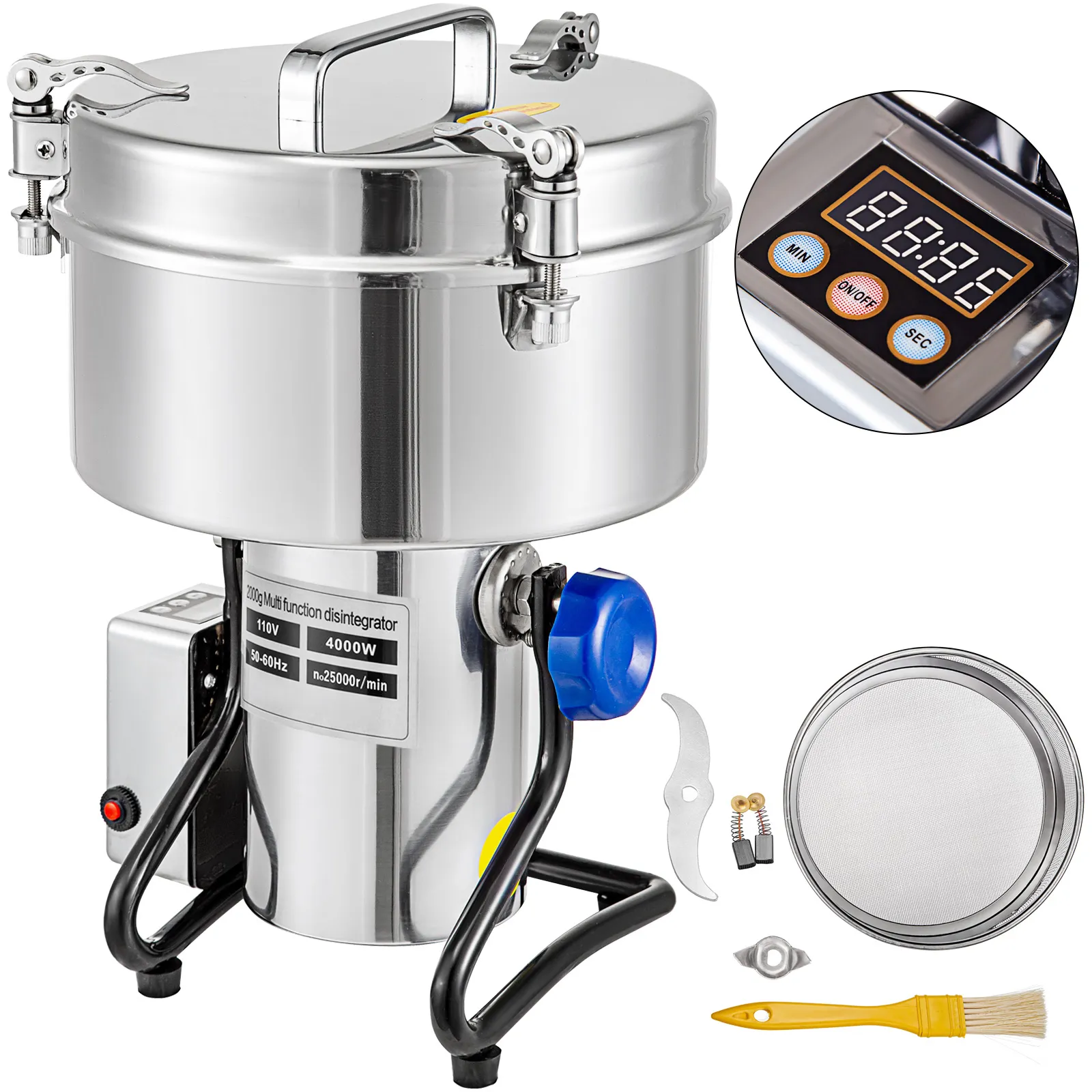 Ti offriamo uno mulino elettrico per grano di alta qualità. Di piccole dimensioni, leggero, altamente efficiente, facile da usare. Realizzato in materiale in acciaio inossidabile 304, sano e resistente. Con il potente motore da 4500 watt, può macinare 2000 g di cibo in una sola volta. Uno schermo digitale LCD fornito per un controllo intelligente. Dispone inoltre di una protezione da sovraccarico sicura per evitare che il motore si bruci. Può distruggere rapidamente tutti i tipi di cibo disidratato, riso, mais, sesamo, soia, mangime per pesci, pepe, medicine, ecc. Adatto a tutti i tipi di materiale.