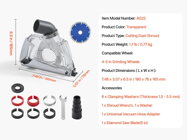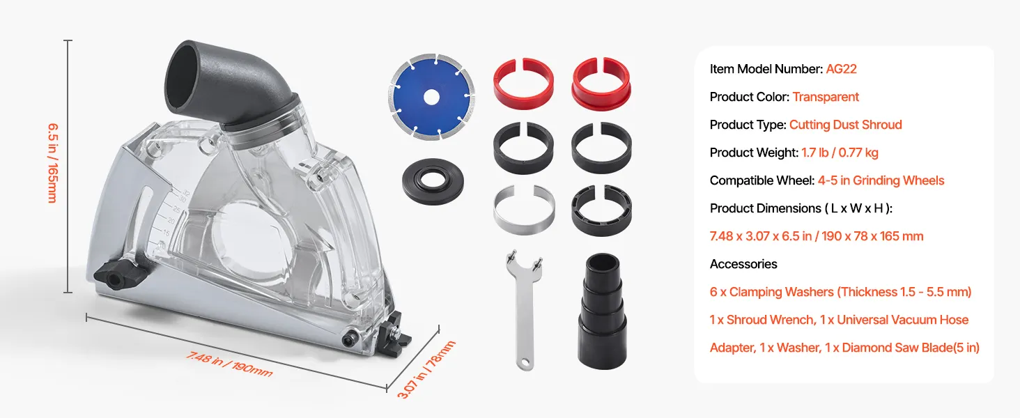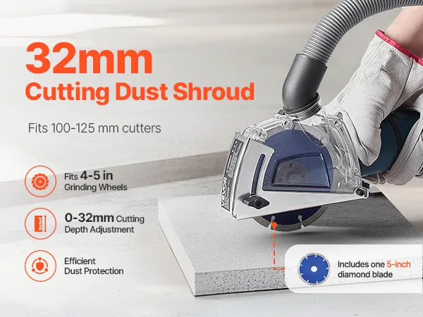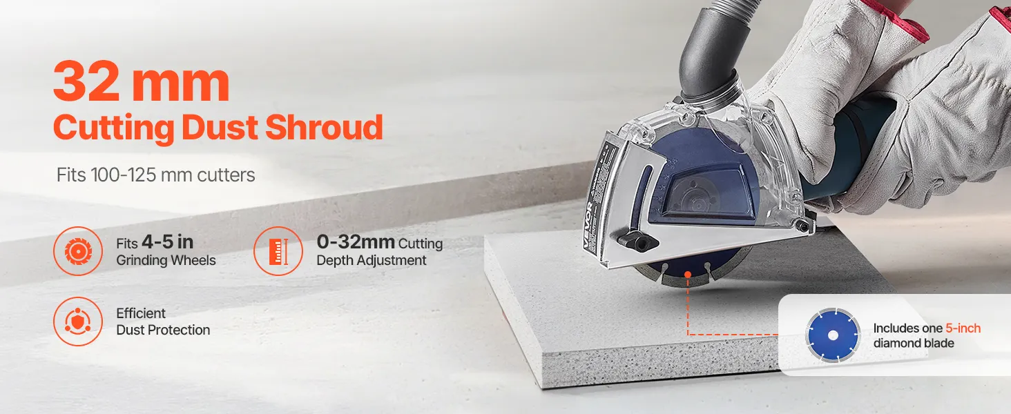 Adatto per mola da 4-5 pollici: il nostro parapolvere da taglio include una lama diamantata da 5 pollici, una dimensione standard comunemente usata con le smerigliatrici angolari