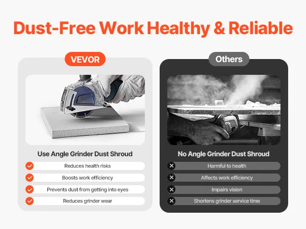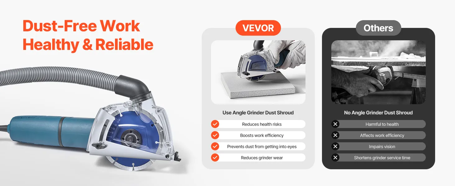 Riduce i rischi per la salute, migliora l'efficienza del lavoro e riduce al minimo l'usura della smerigliatrice angolare, offrendoti un ambiente più pulito e più sano.