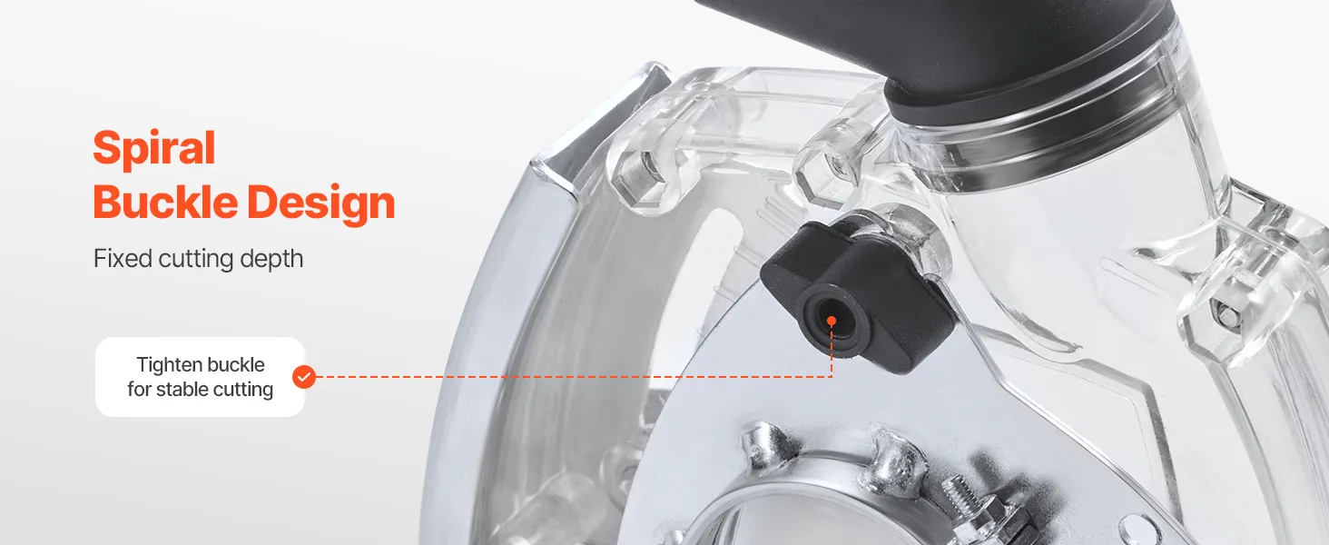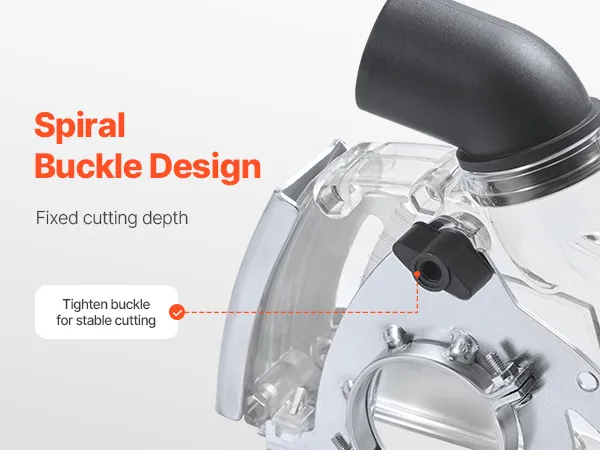 La copertura di raccolta della polvere è dotata di un meccanismo di bloccaggio a spirale. Una volta impostata la profondità di taglio desiderata, è sufficiente bloccare la posizione a spirale per evitare regolazioni accidentali durante il funzionamento, garantendo un taglio più stabile.