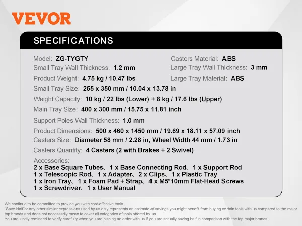 VEVOR Supporto per Proiettore con Ruote, Supporto da Pavimento, Altezza Regolabile 580-1455 mm, Supporto per Proiettore con 2 Vassoi, Ideale per Film all'Aperto, Casa, Ufficio, Palco e Studio, Nero