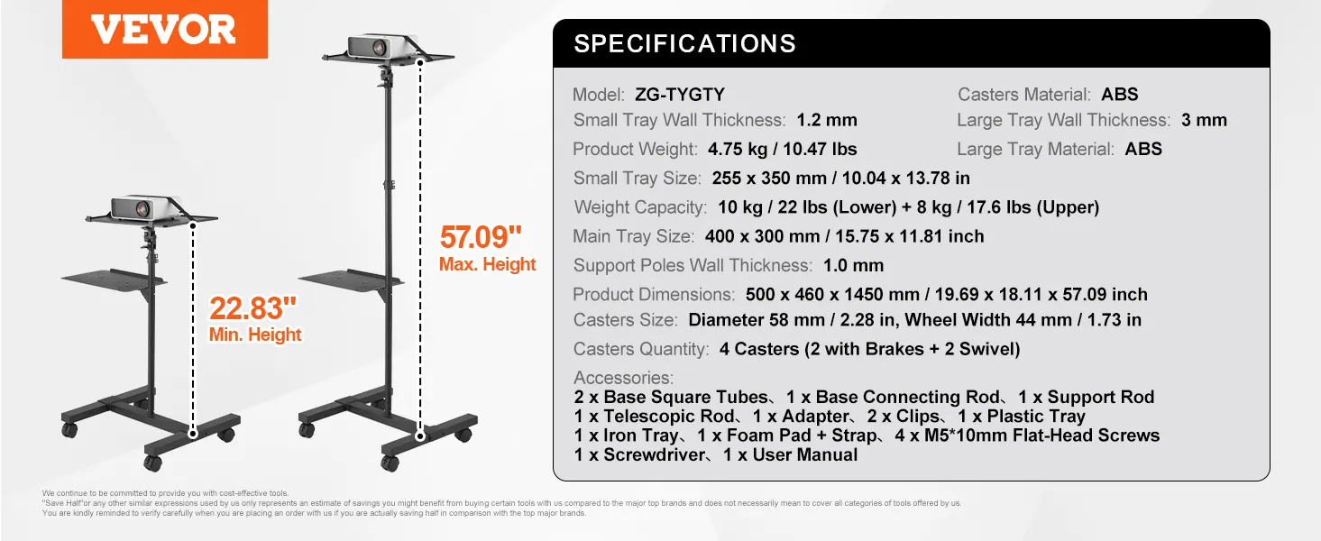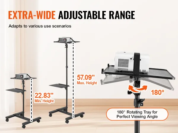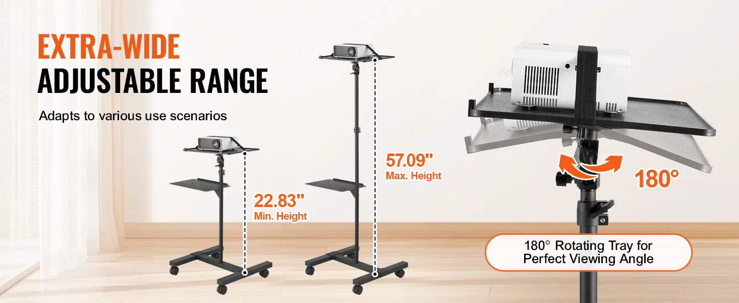 Supporto versatile: il nostro supporto portatile per proiettore è dotato di un vassoio regolabile che combina in modo flessibile il proiettore e il laptop, soddisfacendo le tue esigenze in diverse situazioni.