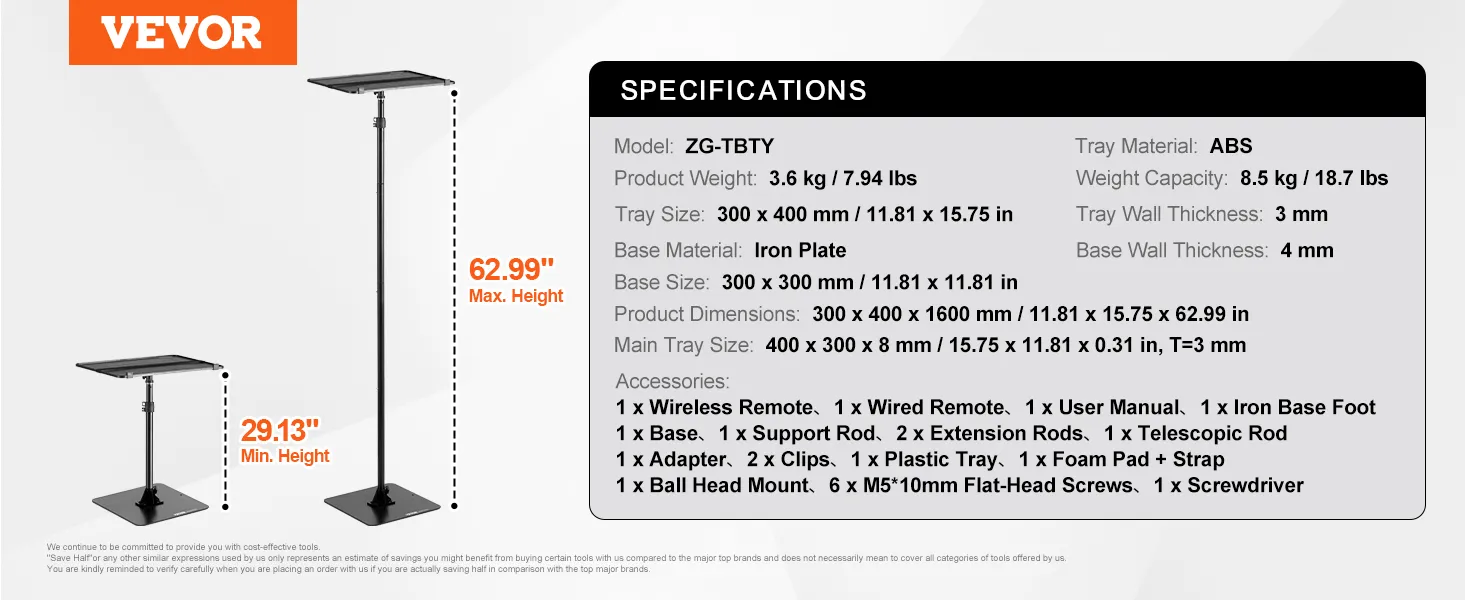 Elevata compatibilità: questo supporto per proiettore con treppiede supporta laptop, registratori, proiettori e altro ancora, rendendolo perfetto per musicisti, insegnanti e studenti: basta collegarlo e utilizzarlo!