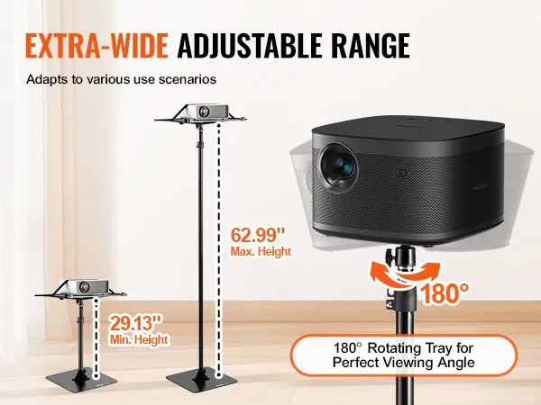 Grazie all'ampia gamma di altezze, da 30,3 a 63,4 pollici, questo supporto portatile per proiettore si adatta a utenti di diverse altezze.