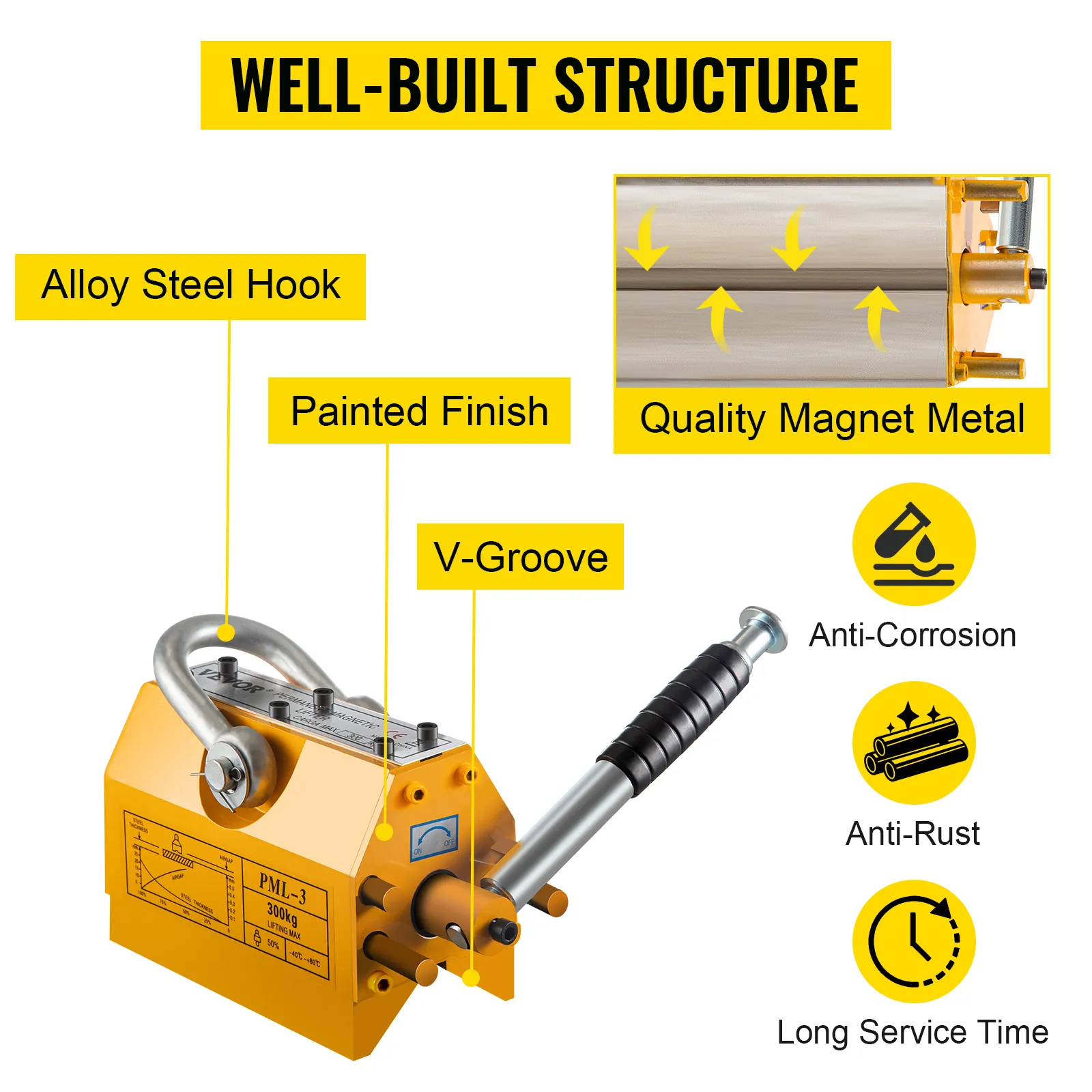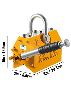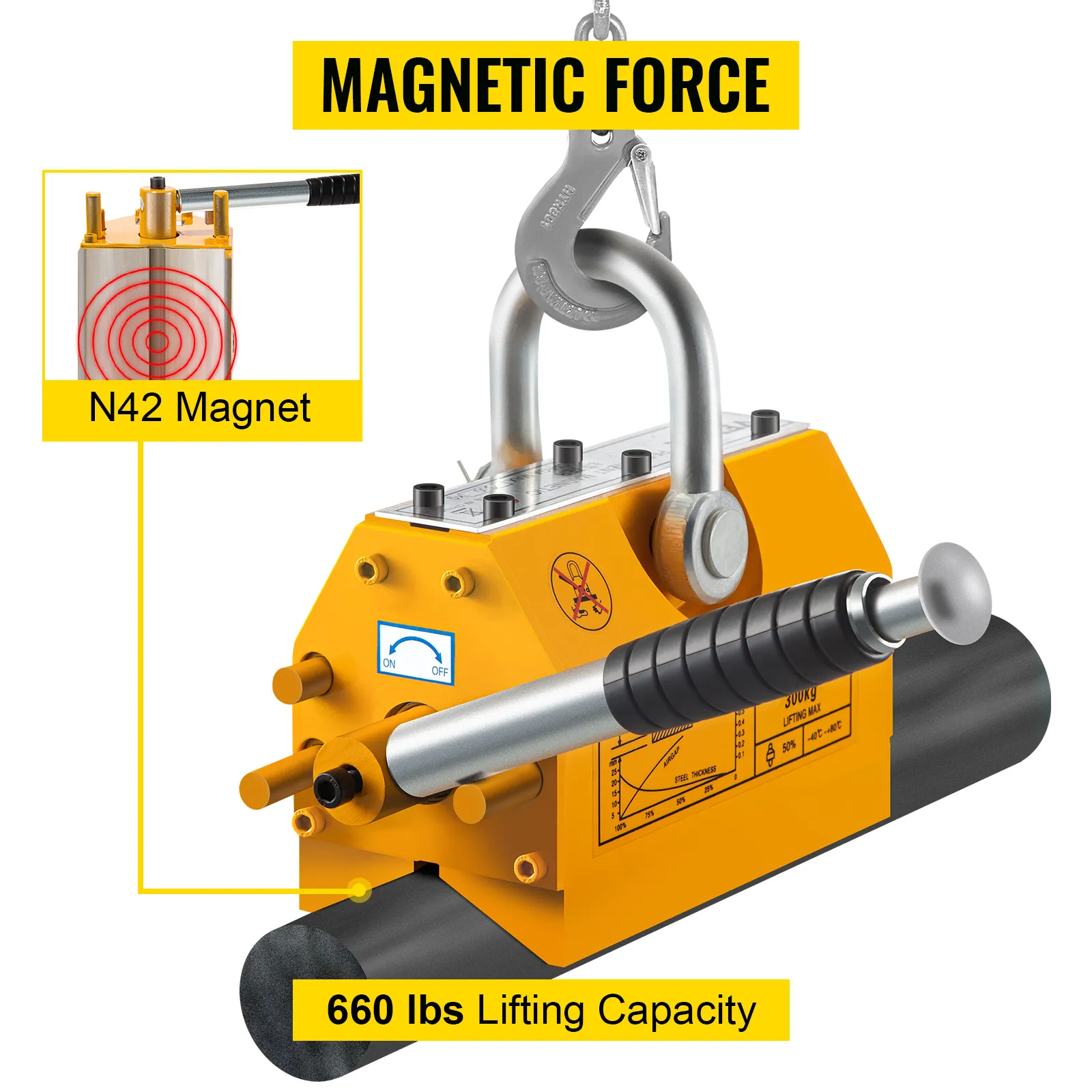 660 lbs Capacità di Sollevamento: max. Capacità di sollevamento: 660 libbre/300 kg. Dimensione dell'articolo: 8x3x5 pollici. Temperatura di esercizio: < 80 ℃. Con un fattore di sicurezza di 2,5, è abbastanza affidabile per sollevare tipi di materiale in acciaio.