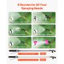 • VEVOR backpack sprayer with plastic and extendable brass wands on a green lawn.