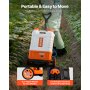VEVOR backpack sprayer with blue hose, orange and black components, and wheels for easy mobility
